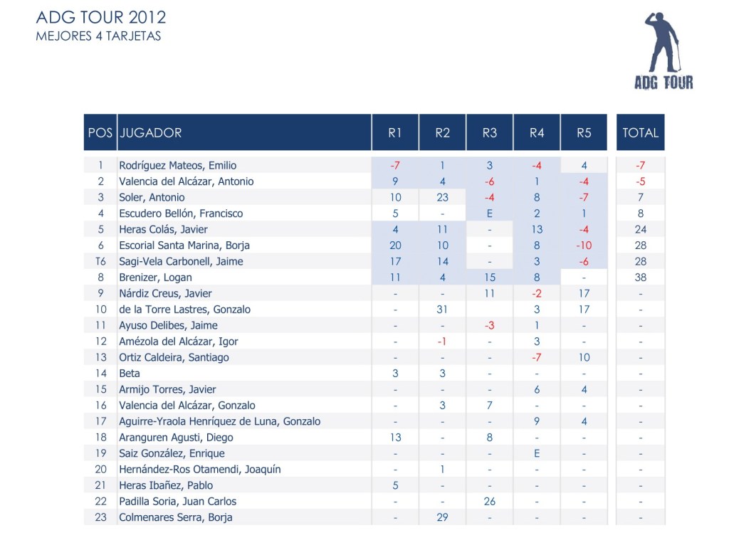 Primera edición del ADG Tour. Se apuntaron 23 jugadores y ganó Emilio Rodríguez. Sólo 8 jugadores completaron el mínimo de 4 torneos… y jugó hasta Borja Colmenares!