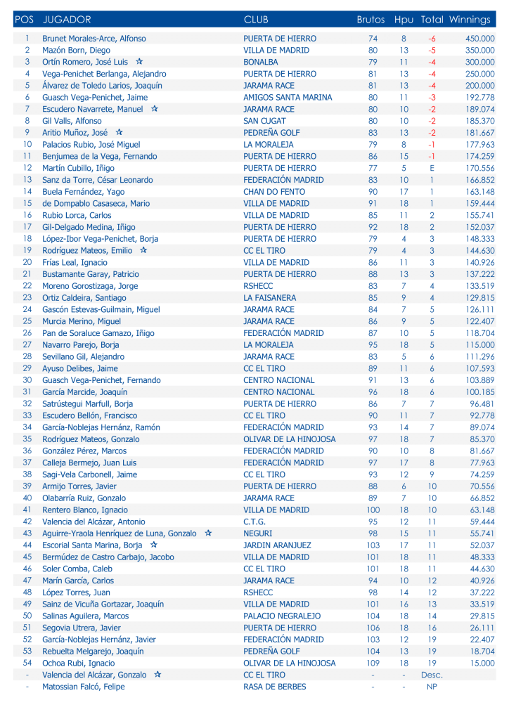 A continuación os dejamos la clasificación final del Torneo y la general del Tour que clasifica para La Gran Final a 2 días en La Faisanera.