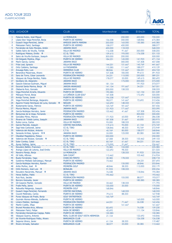 este Sábado tuvimos la suerte de disputar el tercer Torneo del ADG Tour 2023 en El Encín. Para esta ocasión contamos como patrocinador principal con Mabel Capital, quien añadió a los ya ilustres trofeos ofrecidos por ChapArt y al vino cortesía de Hacienda López de Haro, invitaciones a sus restaurantes Tatel y Totó para los 3 primeros clasificados.