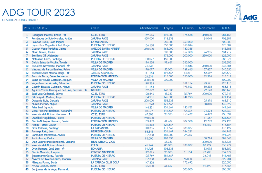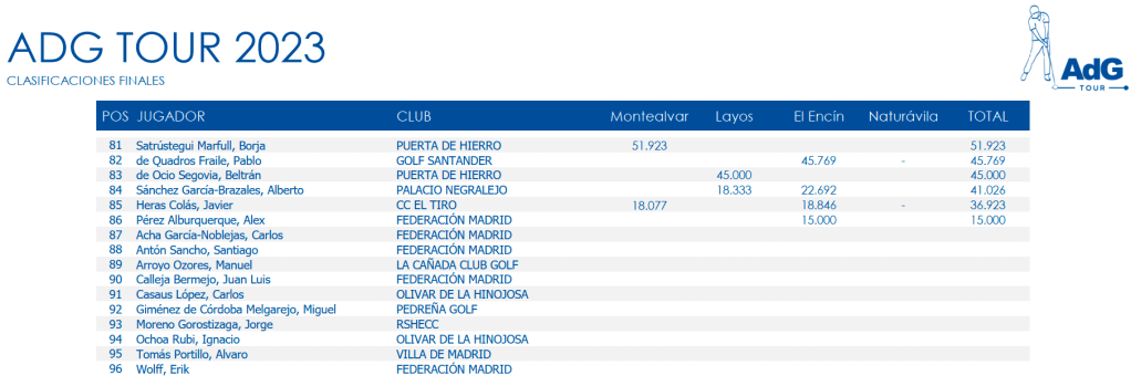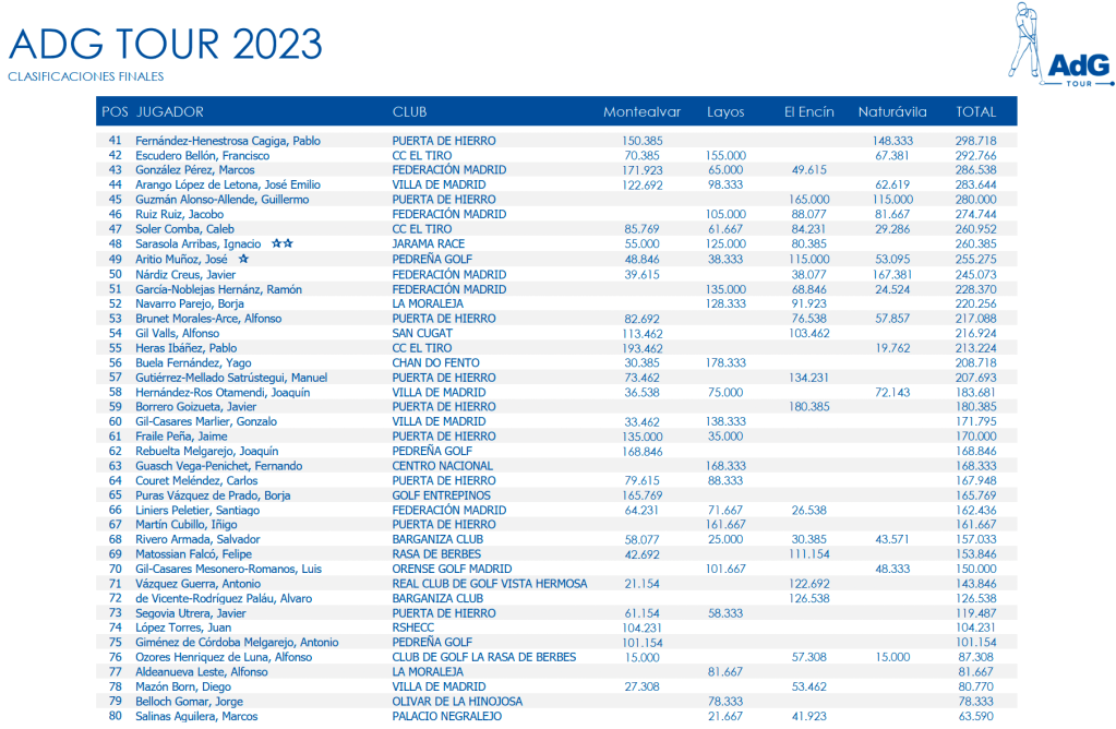 El último torneo del ADG Tour 2023, que tuvo lugar en Naturávila este pasado Domingo, puso las cosas en su sitio. Los 40 jugadores que disputarán La Gran Final para jugarse en Septiembre un viaje a Diente de Perro ya tienen nombre y apellidos. Como también lo tienen los que “consiguieron” clasificarse para la final de consolación. Aunque en estos momentos debe consolar poco.